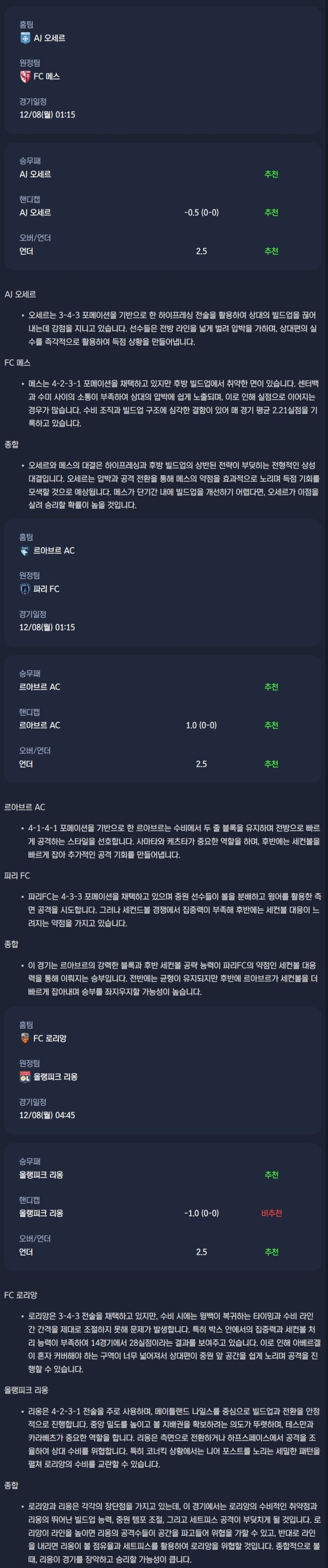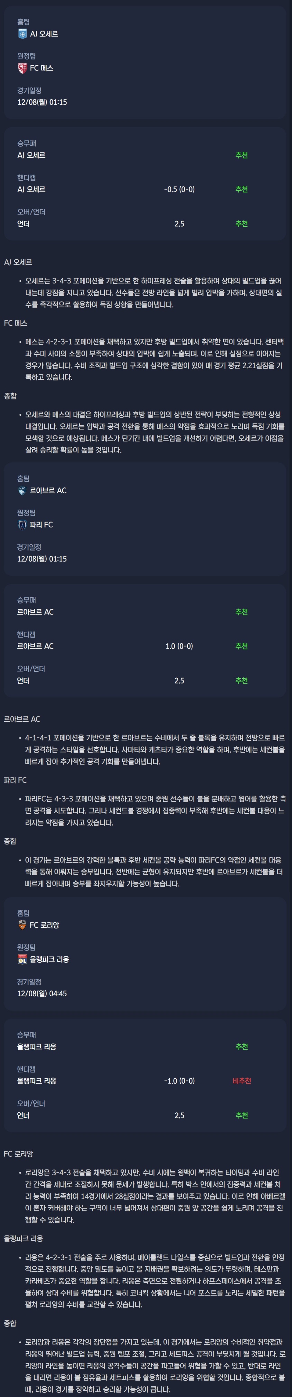 2025년 12월 08일 리그1 분석자료 / 축구분석