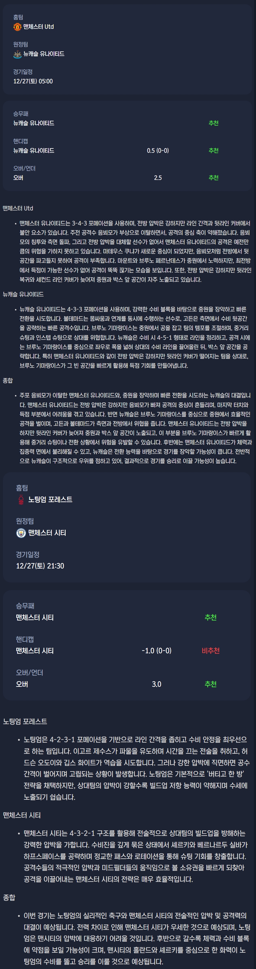 2025년 12월 27일 EPL 분석자료 / 축구분석