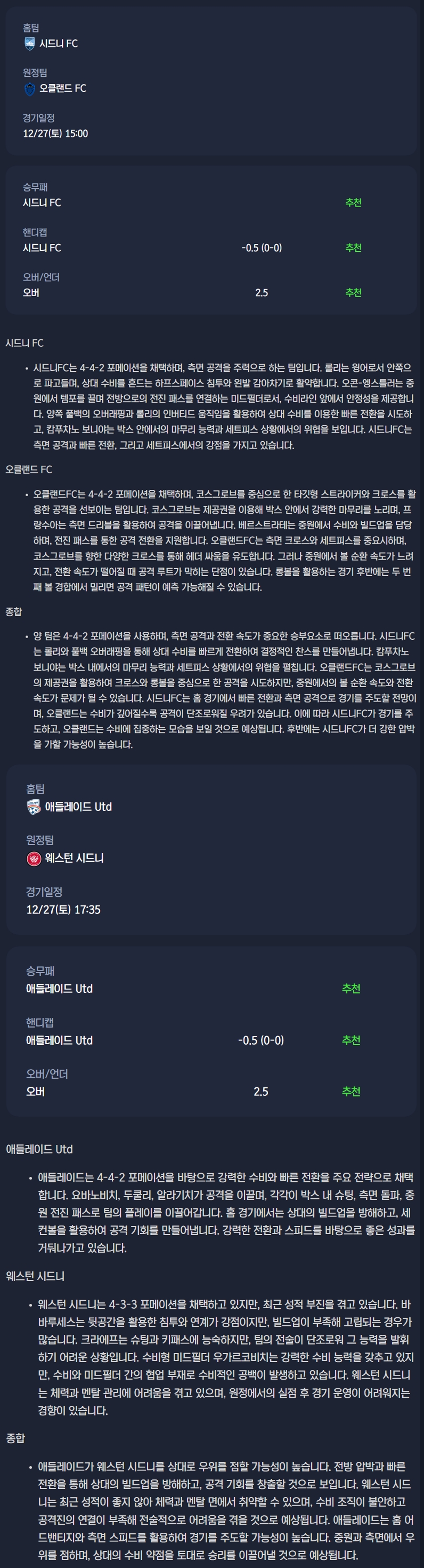 2025년 12월 27일 A리그 분석자료 / 축구분석