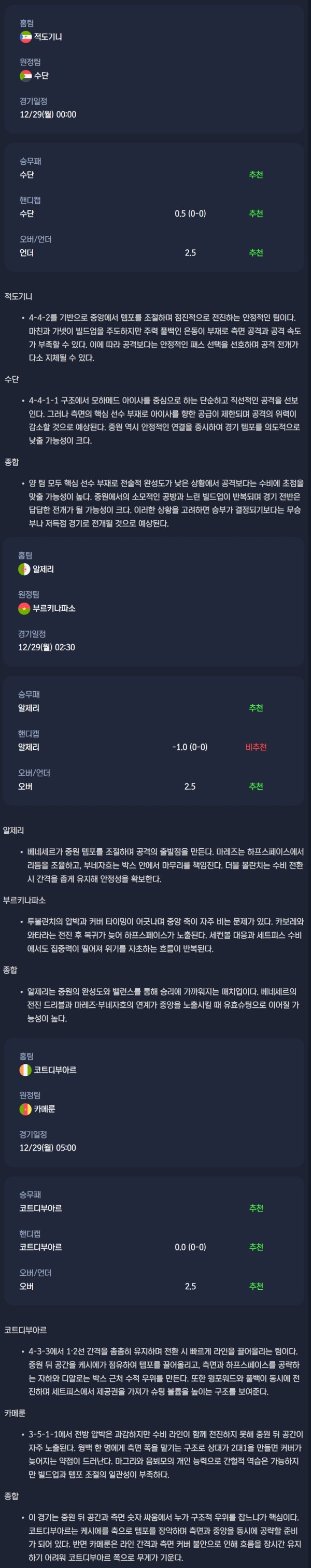 2025년 12월 29일 아프리카 네이션스컵 분석자료 / 축구분석