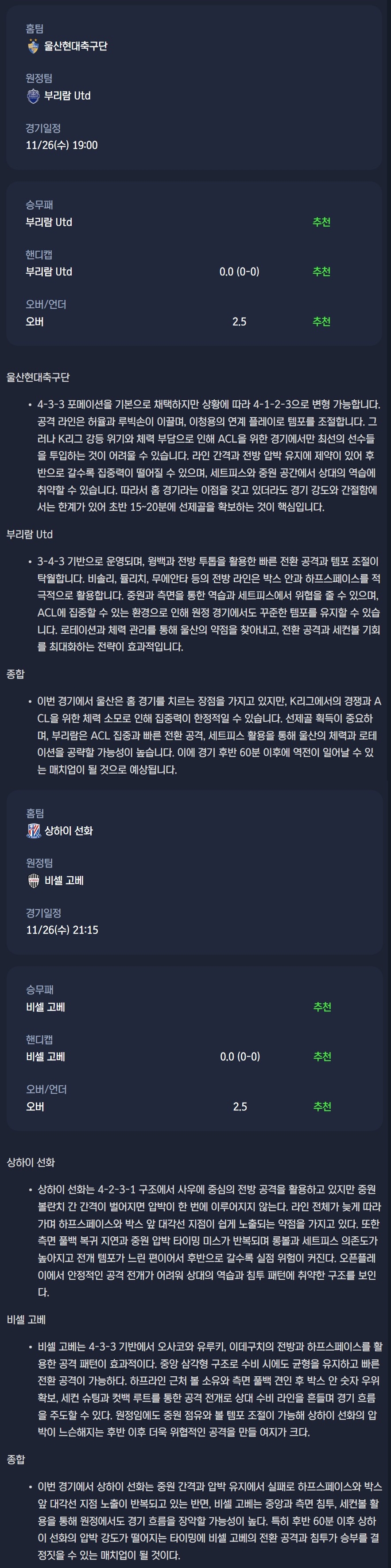 2025년 11월 26일 AFC챔피언스리그 / 축구분석
