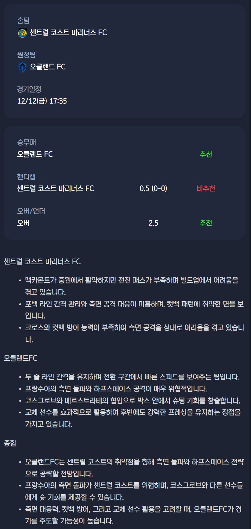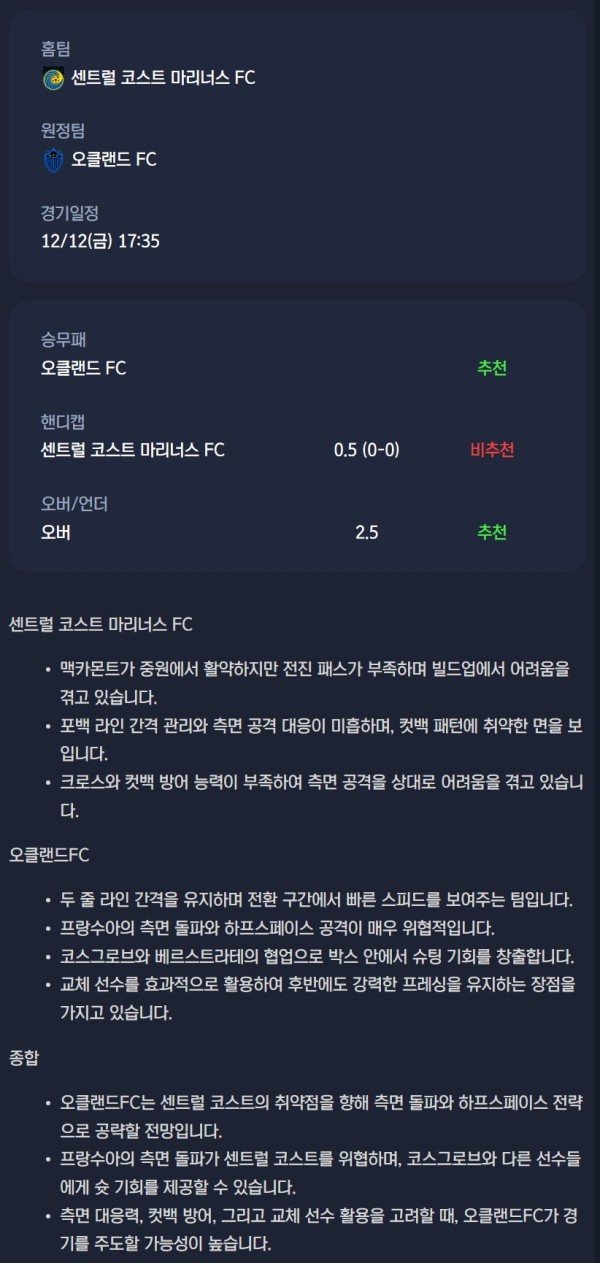 2025년 12월 12일 A리그 분석자료 / 축구분석