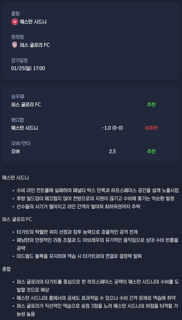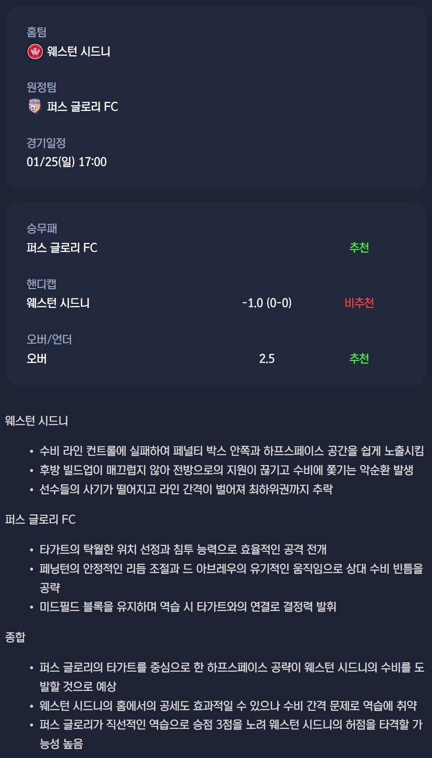 2026년 01월 25일 A리그 분석자료 / 축구분석
