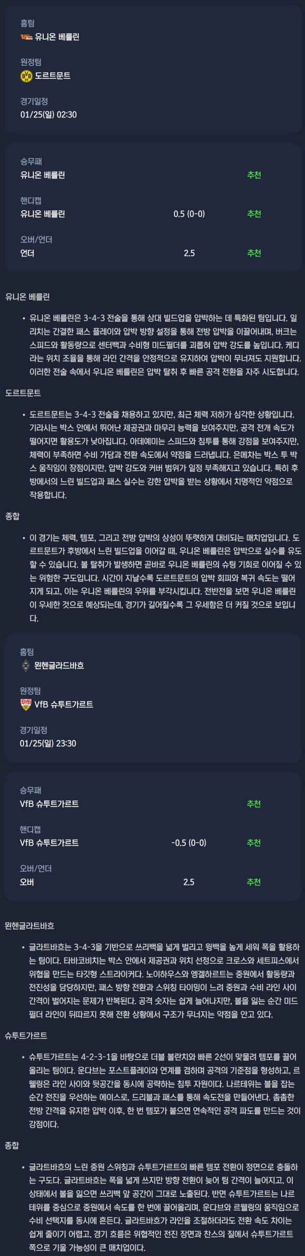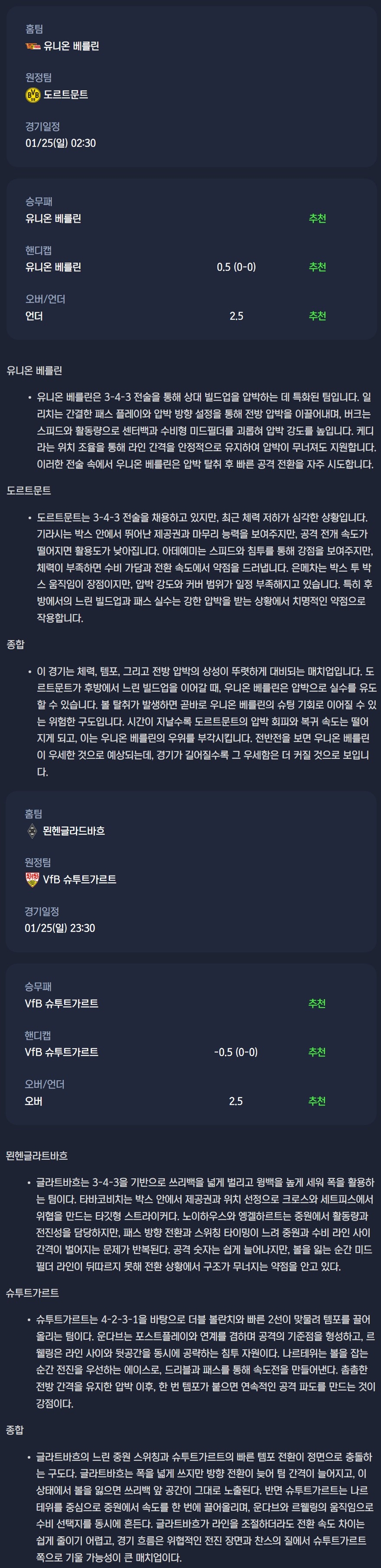 2026년 01월 25일 분데스리가 분석자료 / 축구분석