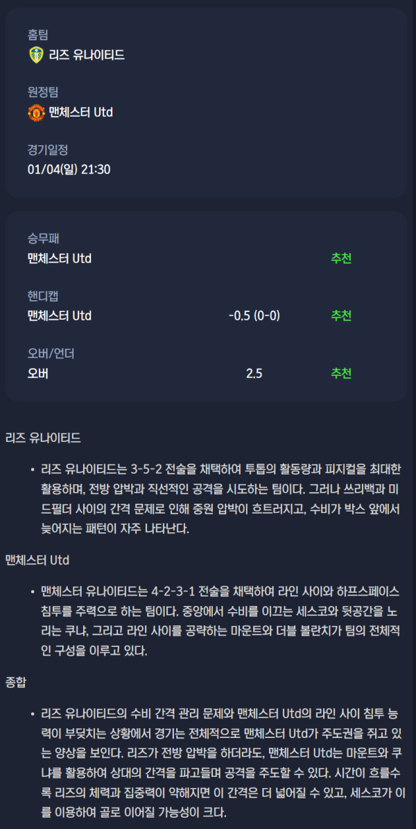 2026년 01월 04일 EPL 분석자료 / 축구분석
