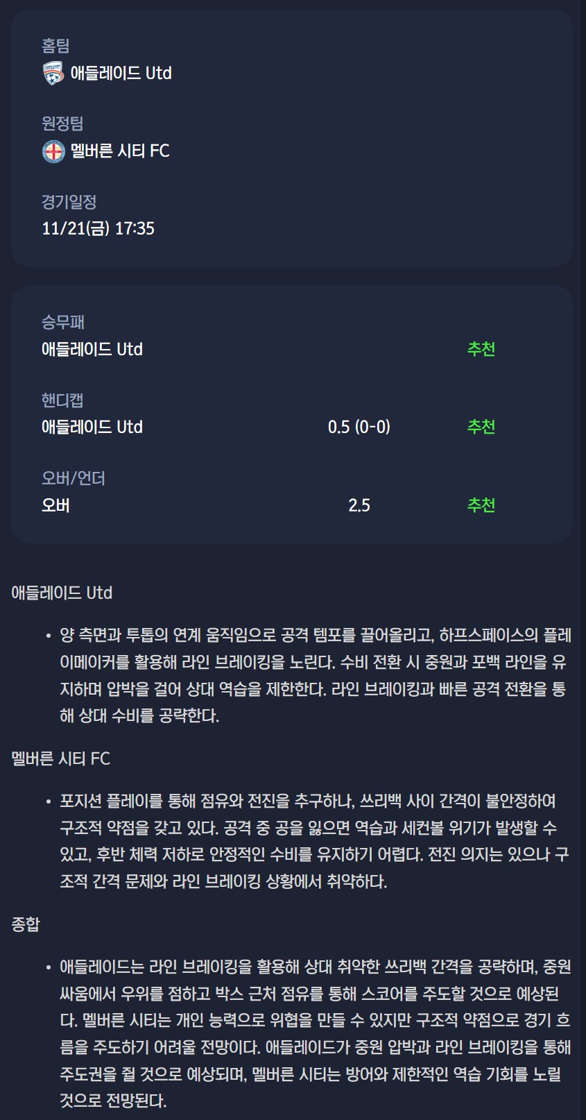 2025년 11월 21일 A리그 분석 / 호주축구분석