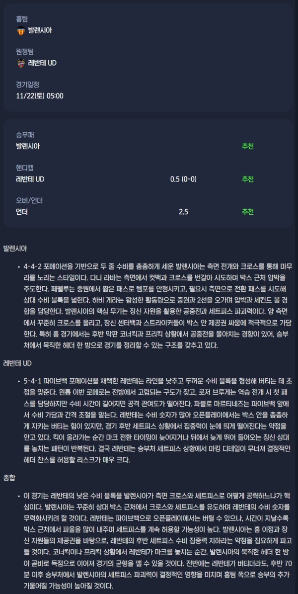 2025년 11월 22일 발렌시아 CF 레반테 UD / 라리가 축구분석
