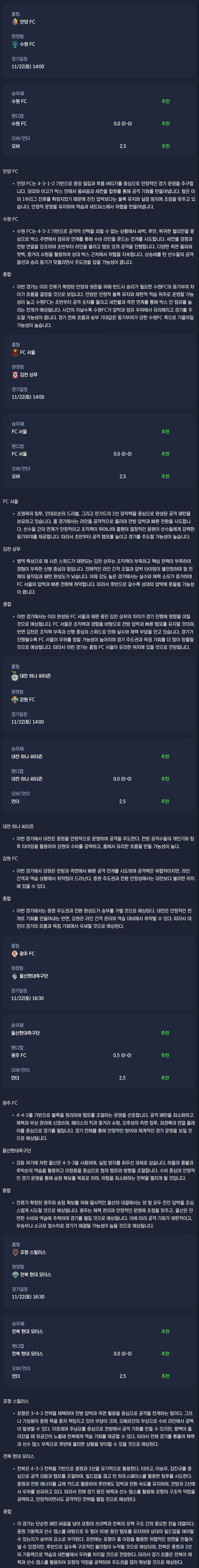 2025년 11월 22일 K리그 분석자료 / 한국축구분석