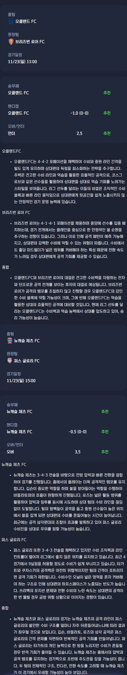 2025년 11월 23일 A리그 분석자료 / 축구분석