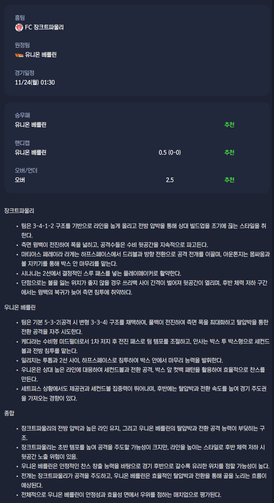 2025년 11월 23일 분데스리가 분석자료 / 축구분석