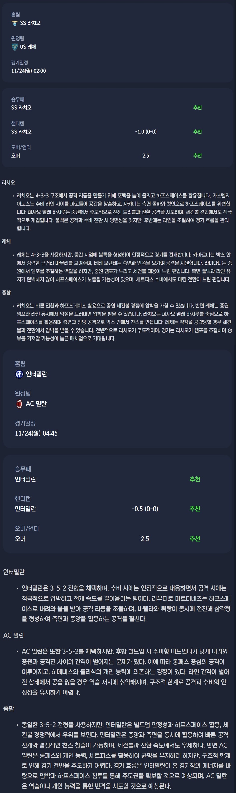 2025년 11월 24일 세리에A 분석자료 / 축구분석