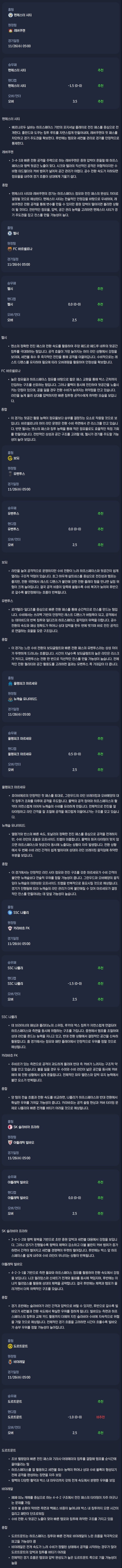 2025년 11월 26일 UEFA 챔피언스리그 / 축구분석