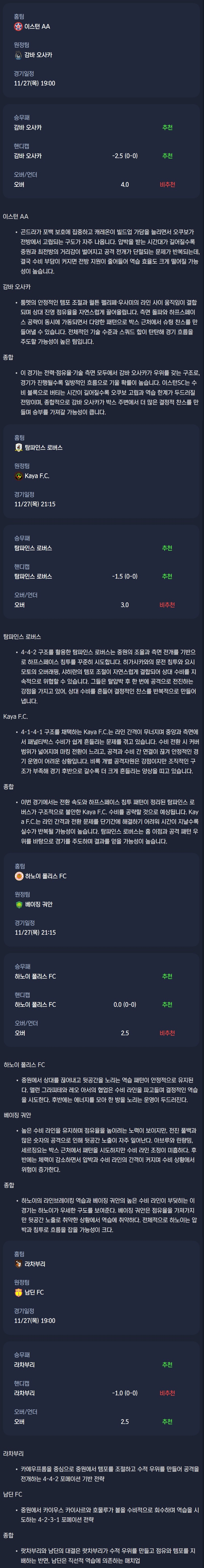 2025년 11월 27일 AFC 챔피언스리그 / 축구분석