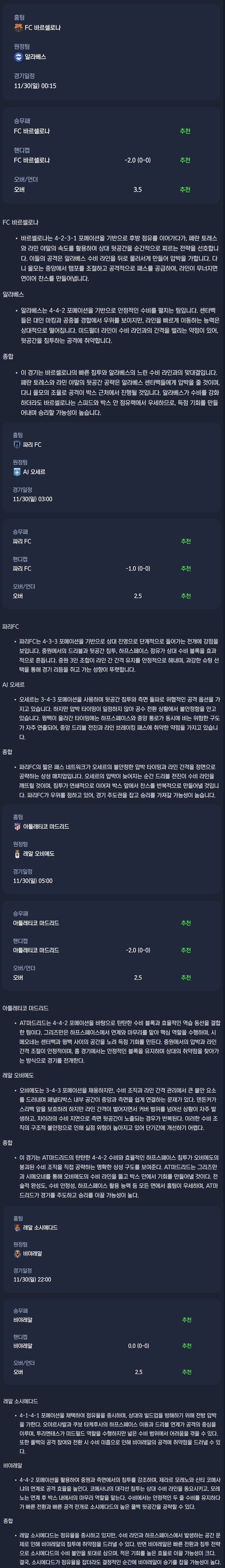 2025년 11월 30일 라리가 분석자료 / 축구분석