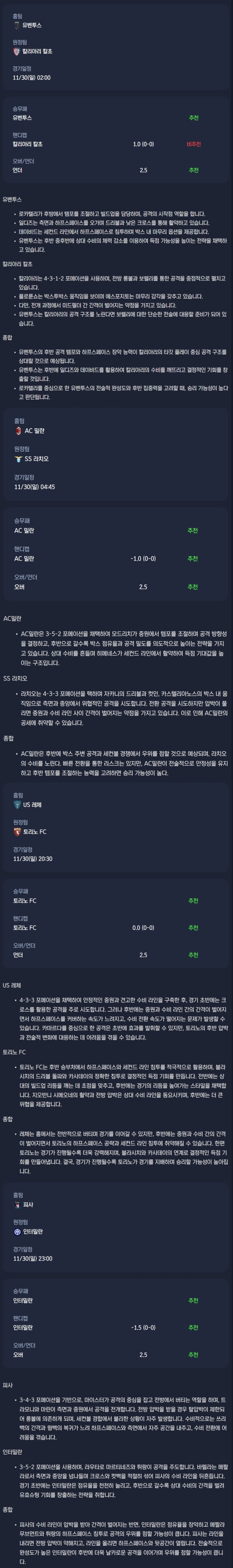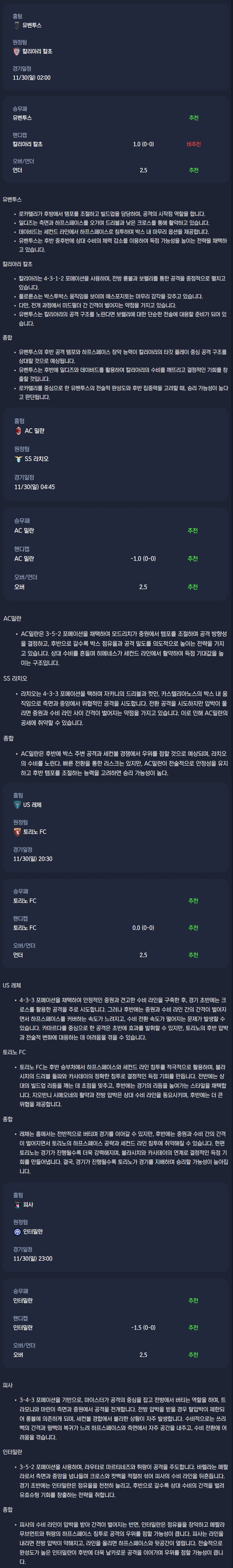 2025년 11월 30일 세리에A 분석자료 / 축구분석