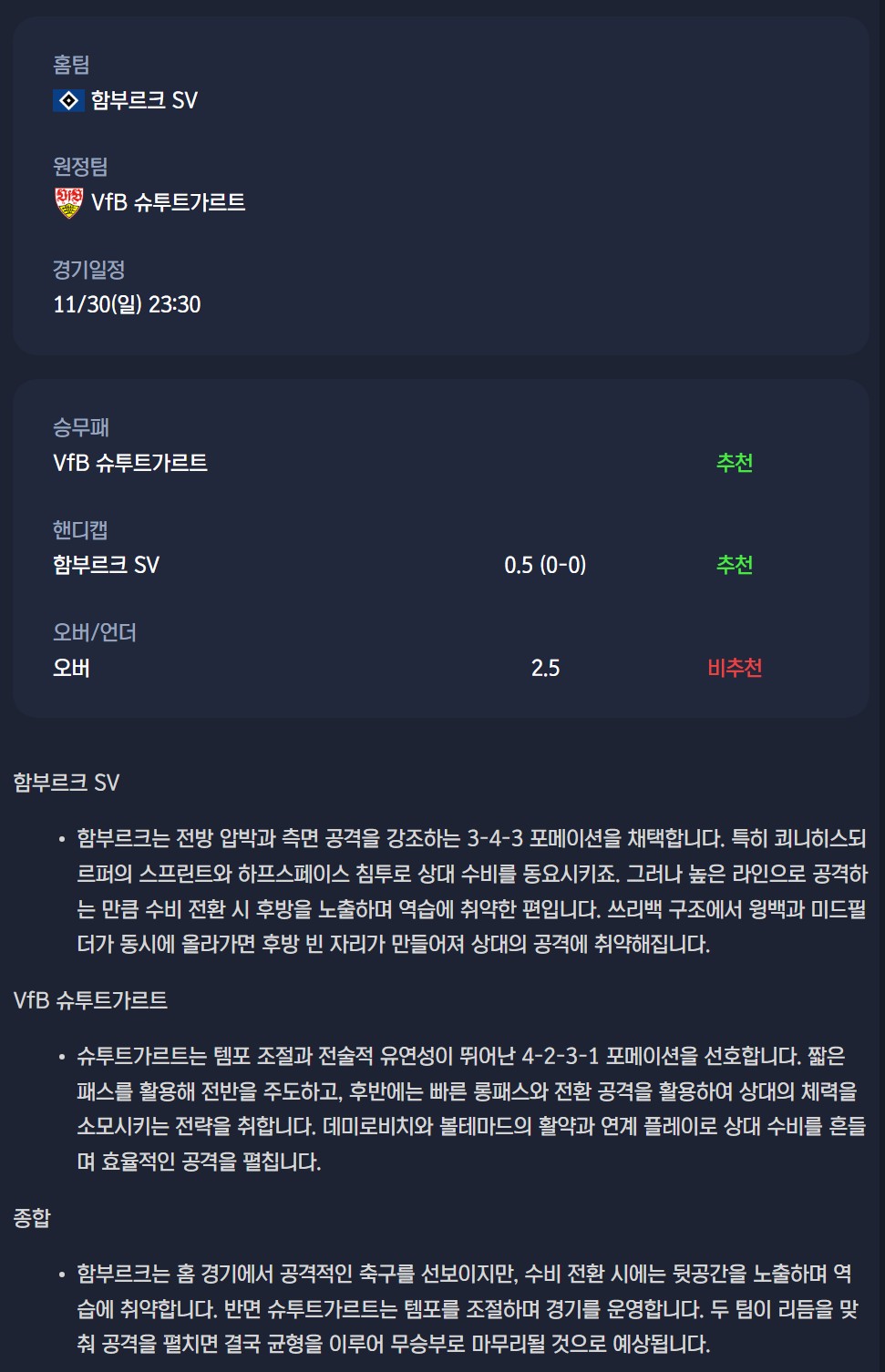 2025년 11월 30일 분데스리가 분석자료 / 축구분석