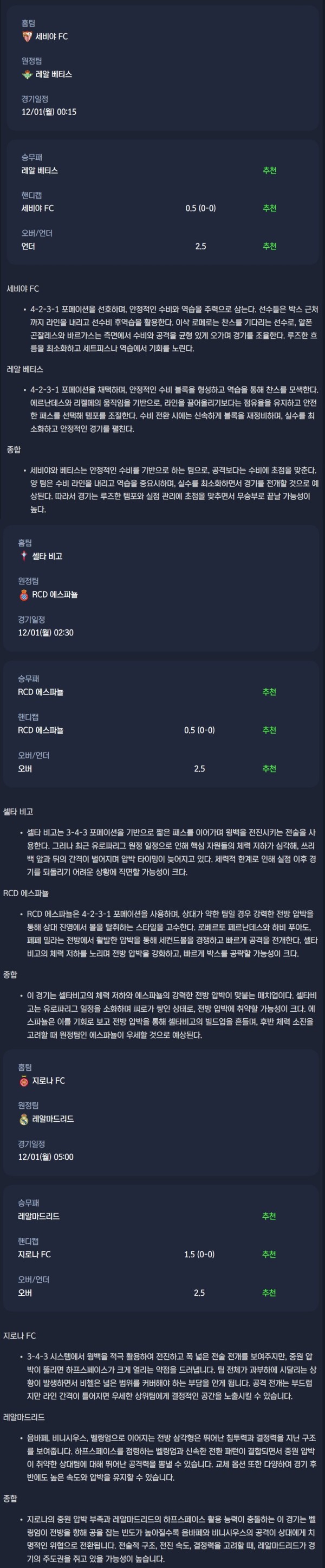2025년 12월 01일 라리가 분석자료 / 축구분석