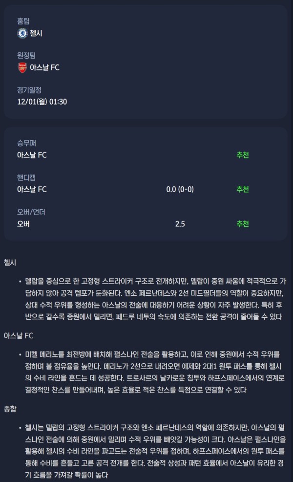 2025년 12월 01일 EPL 분석자료 / 축구분석