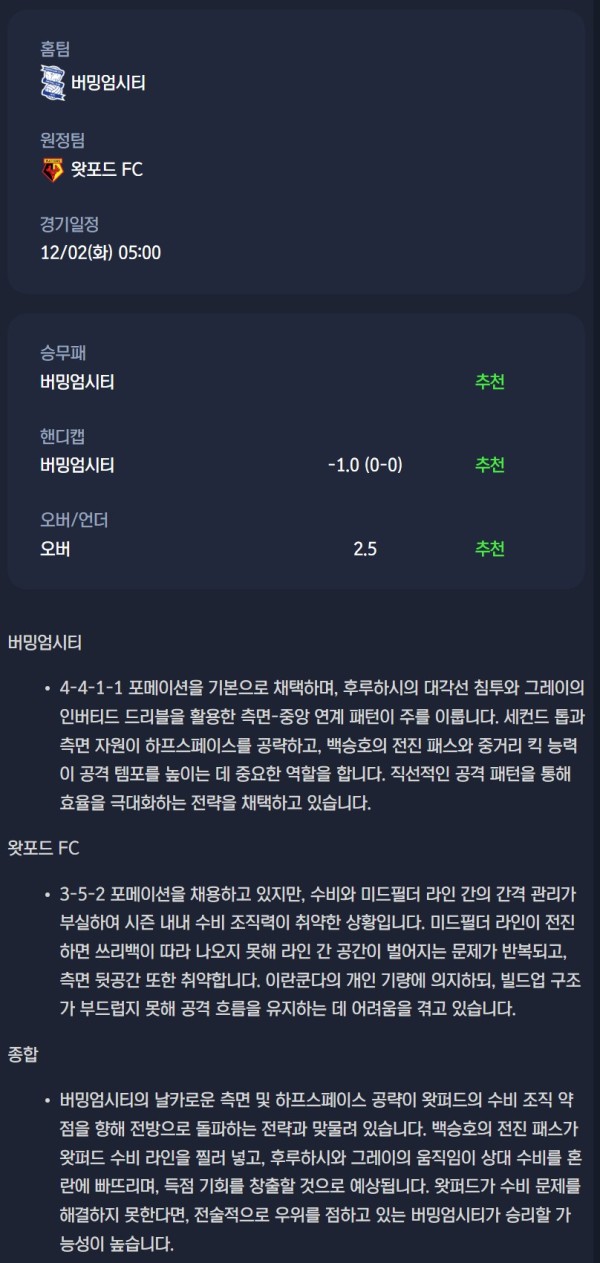2025년 12월 02일 EFL챔피언쉽 분석자료 / 축구분석