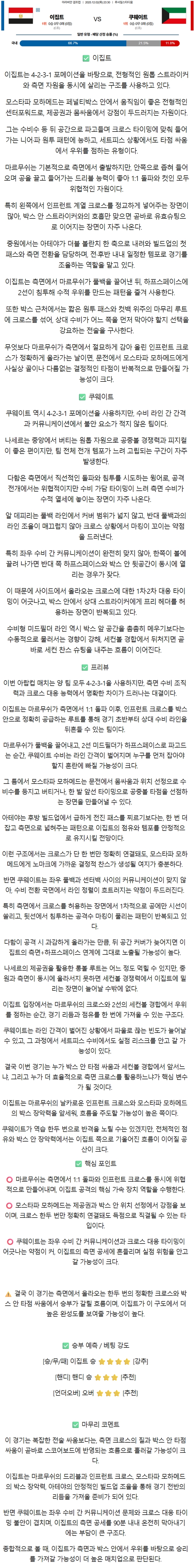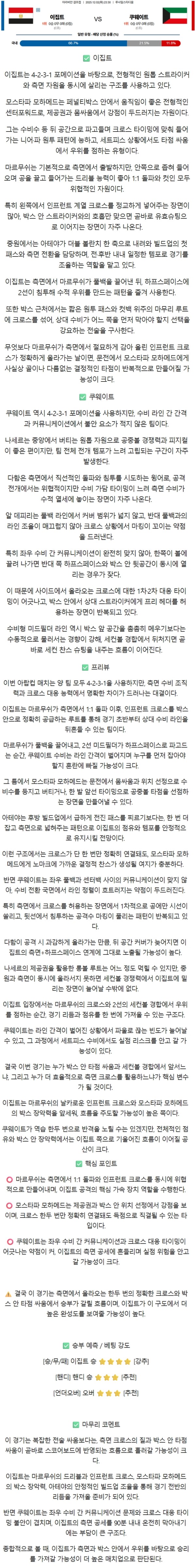 2025년 12월 2일 이집트 vs 쿠웨이트 아랍컵 / 축구분석
