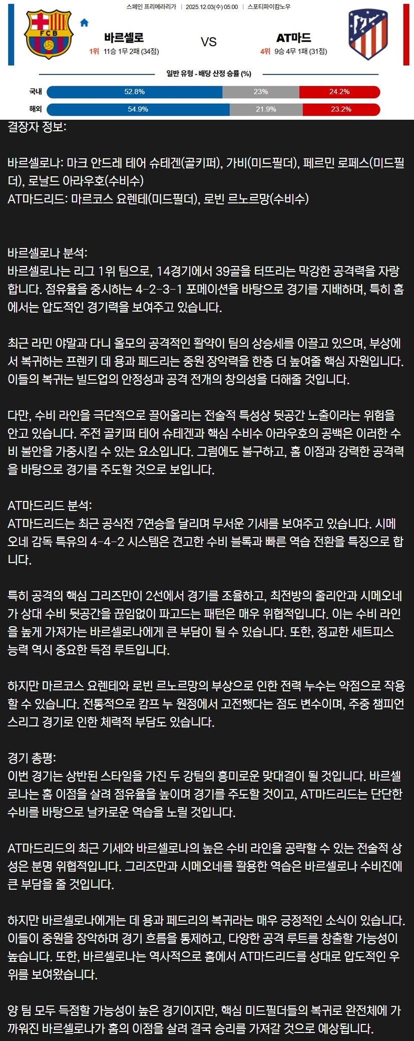 2025년 12월 03일 라리가 분석자료 / 축구분석