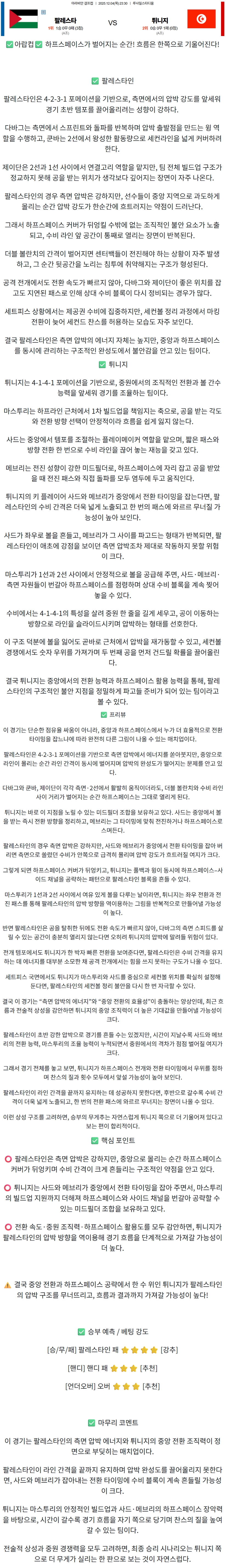 2025년 12월 04일 팔레스타인 vs 튀니지 아라비안 걸프컵 분석자료 / 축구분석