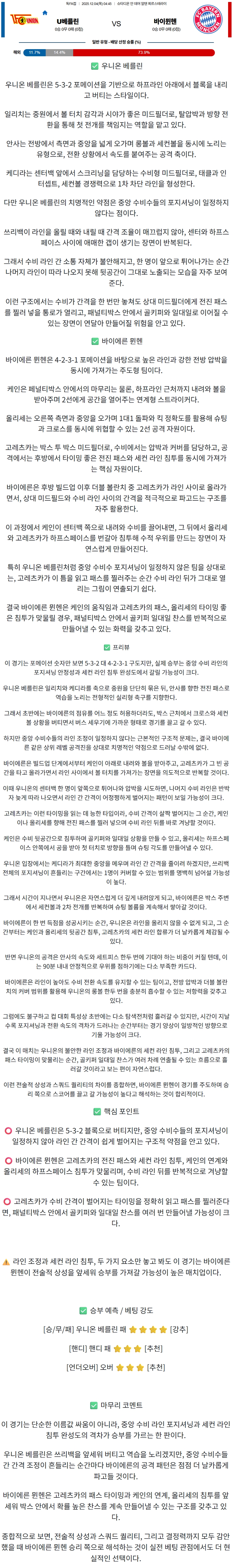 2025년 12월 04일 독일FA컵 분석자료 / 축구분석