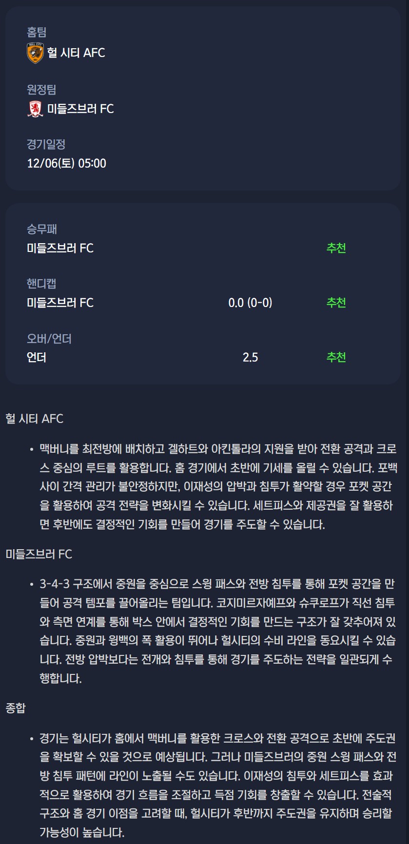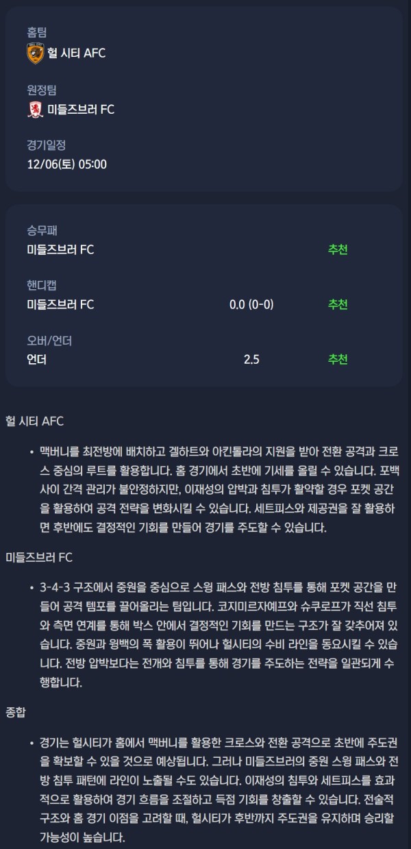 2025년 12월 06일 A리그 분석자료 / 축구분석