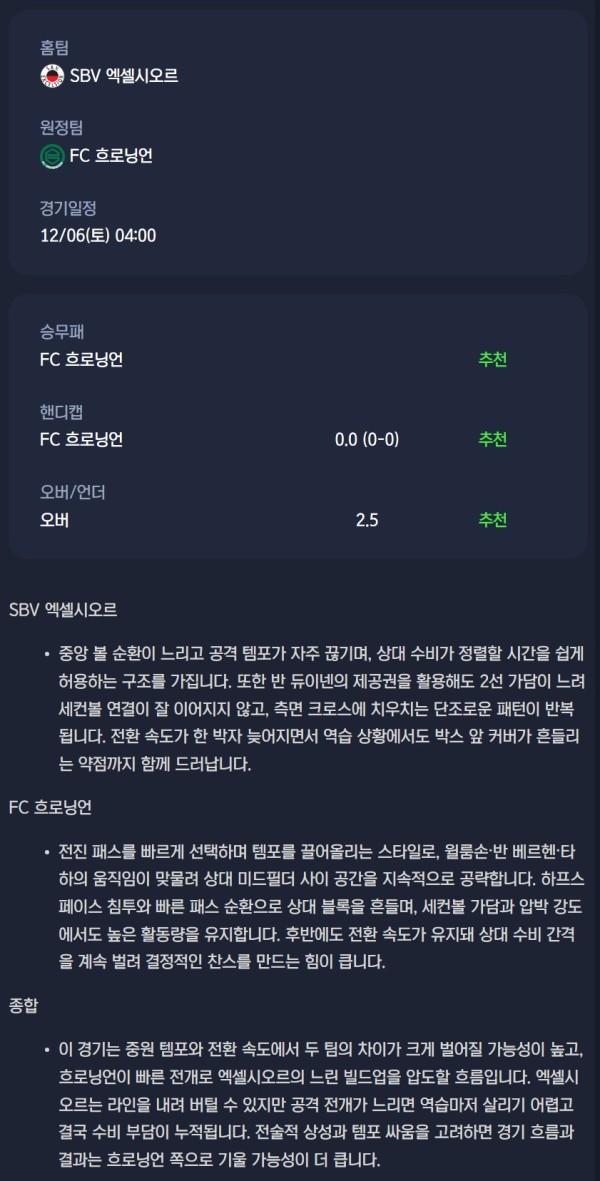 2025년 12월 06일 에레디비시 분석자료 / 축구분석