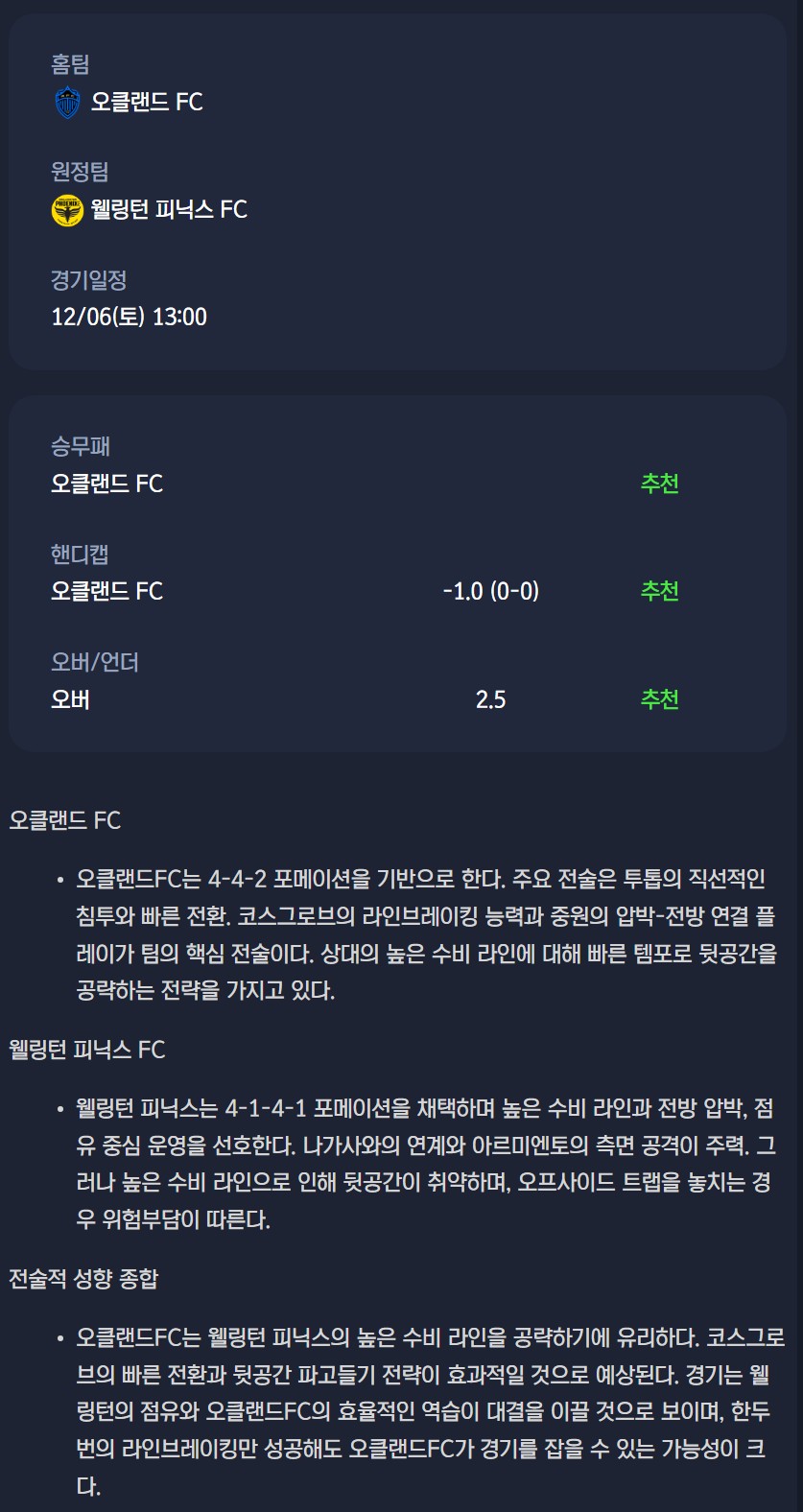 2025년 12월 06일 A리그 분석자료 / 축구분석