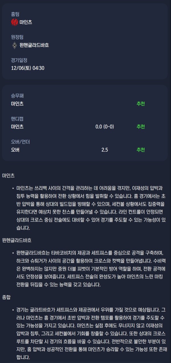 2025년 12월 06일 분데스리가 분석자료 / 축구분석