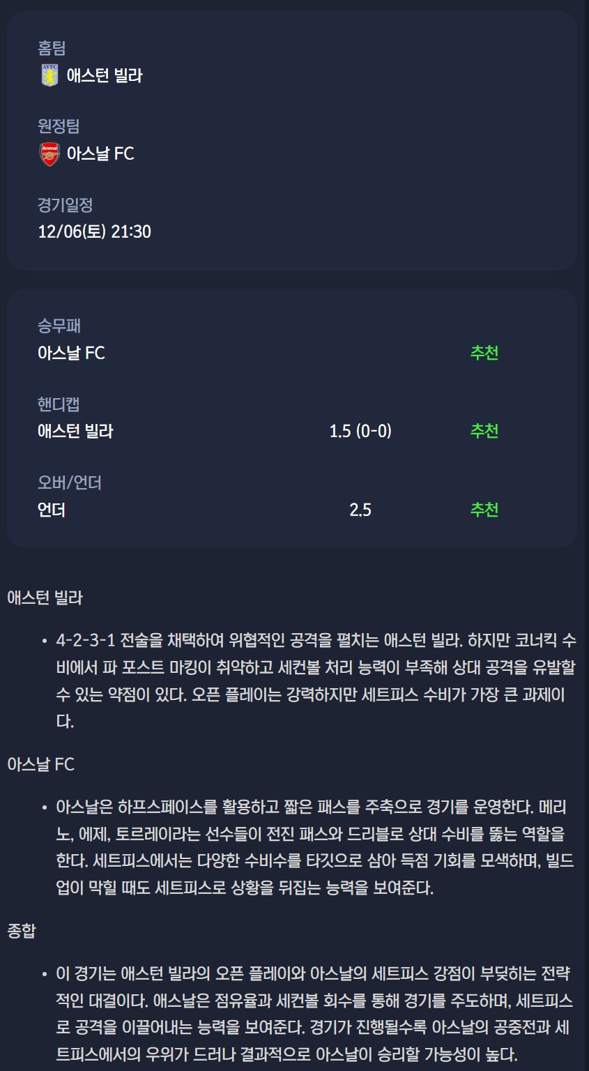 2025년 12월 06일 EPL 분석자료 / 축구분석