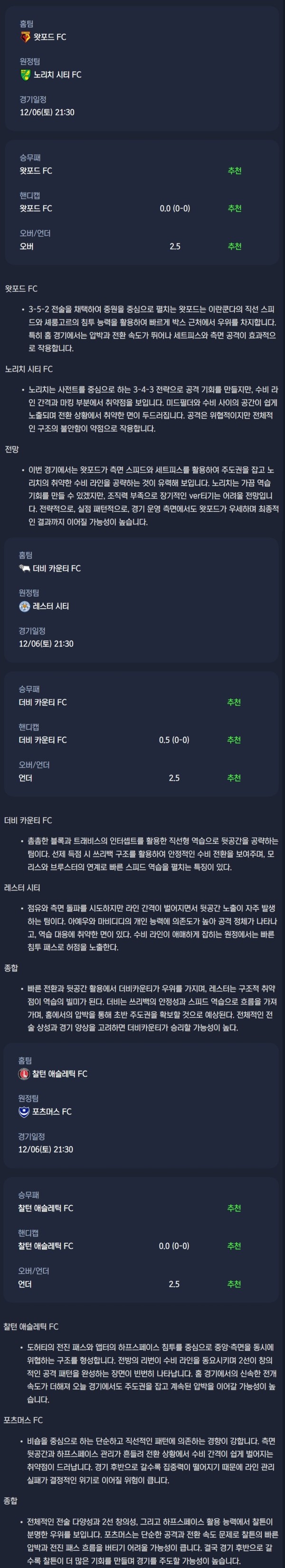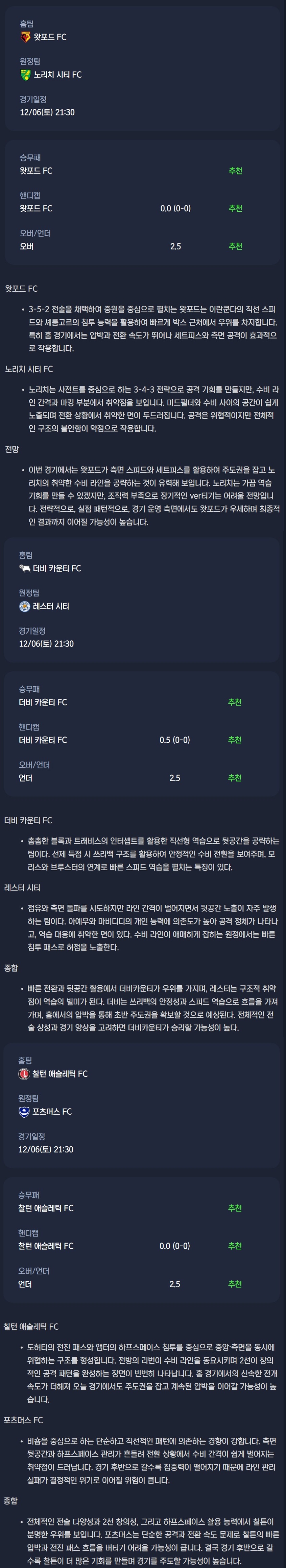 2025년 12월 06일 EFL챔피언쉽 분석자료 / 축구분석