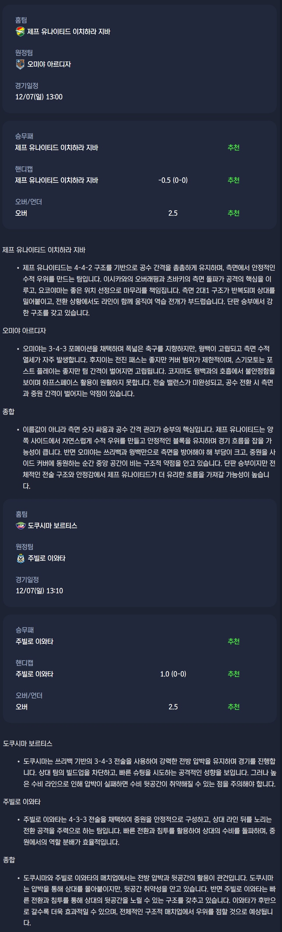 2025년 12월 07일 J리그 분석자료 / 축구분석
