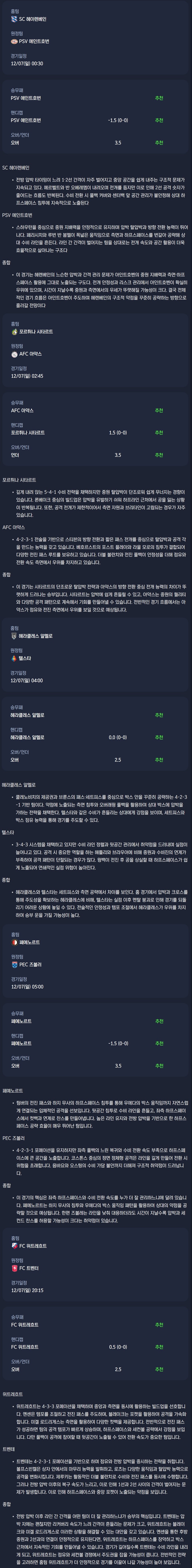 2025년 12월 07일 에레디비시 분석자료 / 축구분석