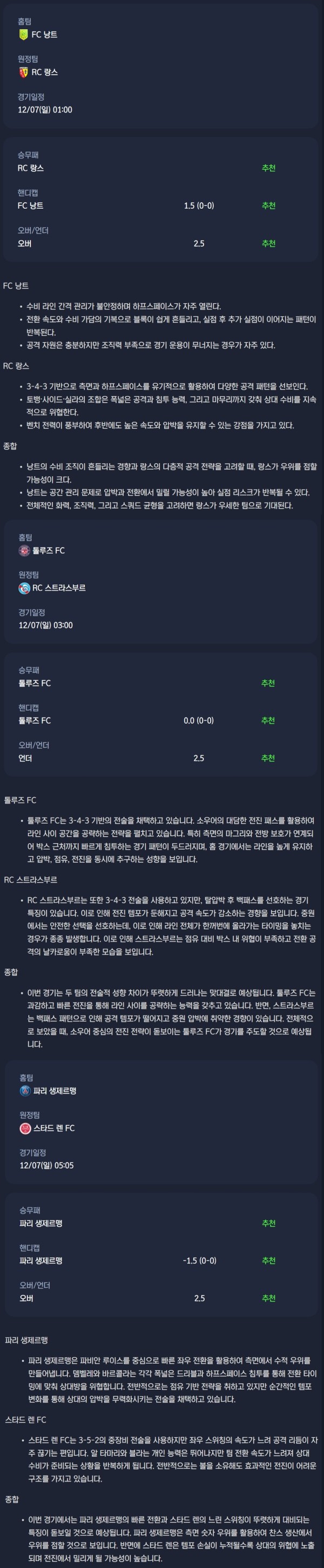 2025년 12월 07일 리그1 분석자료 / 축구분석