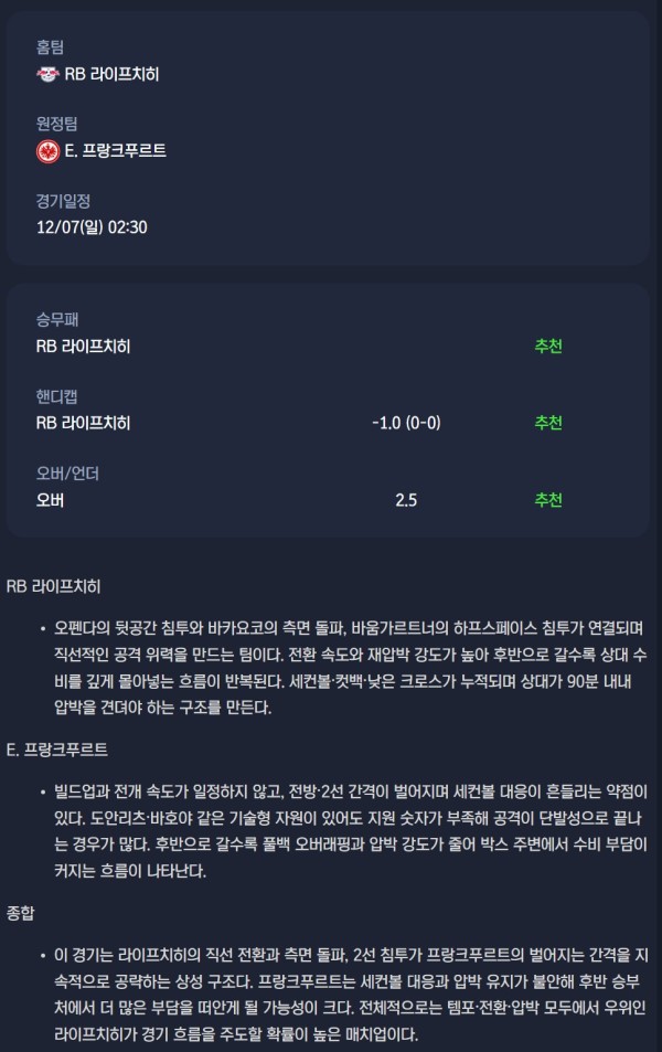 2025년 12월 07일 분데스리가 분석자료 / 축구분석