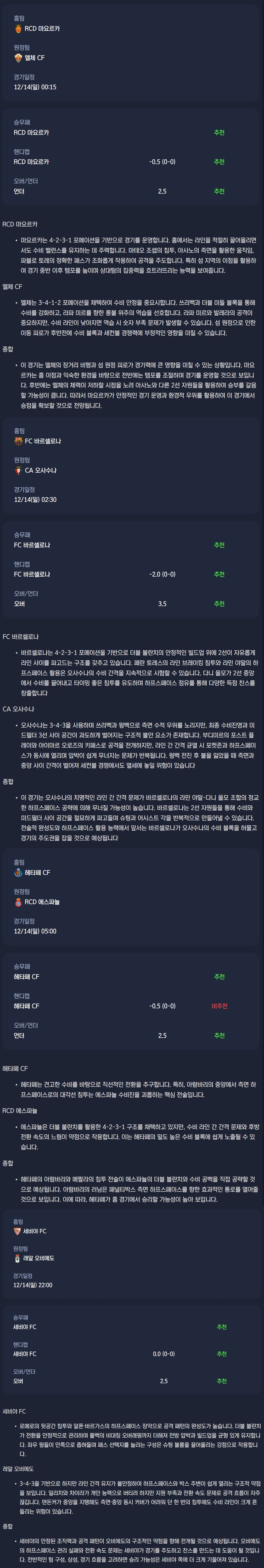 2025년 12월 14일 라리가 분석자료 / 축구분석