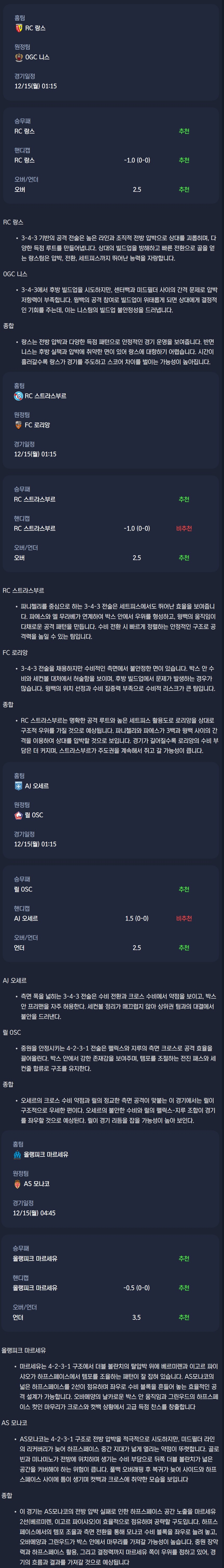 2025년 12월 15일 리그1 분석자료 / 축구분석