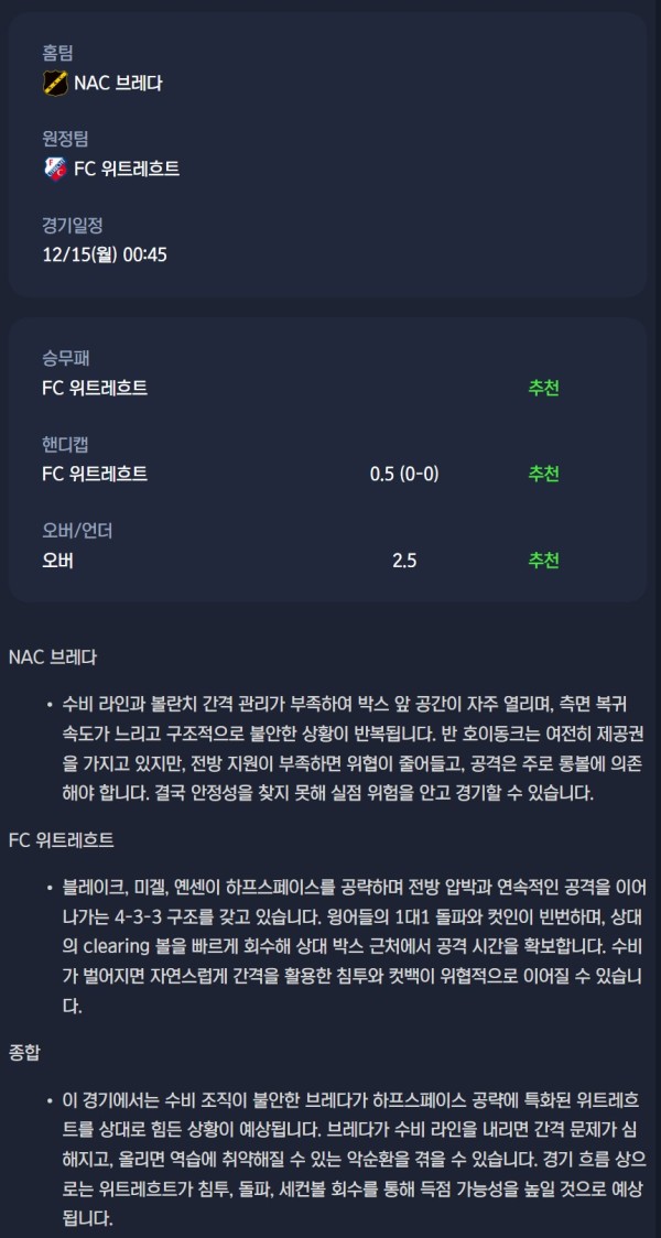 2025년 12월 15일 에레디비시 분석자료 / 축구분석