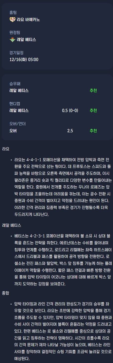 2025년 12월 16일 라리가 분석자료 / 축구분석