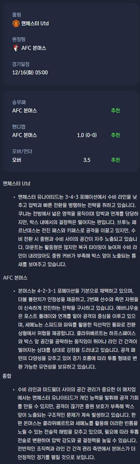 2025년 12월 16일 EPL 분석자료 / 축구분석