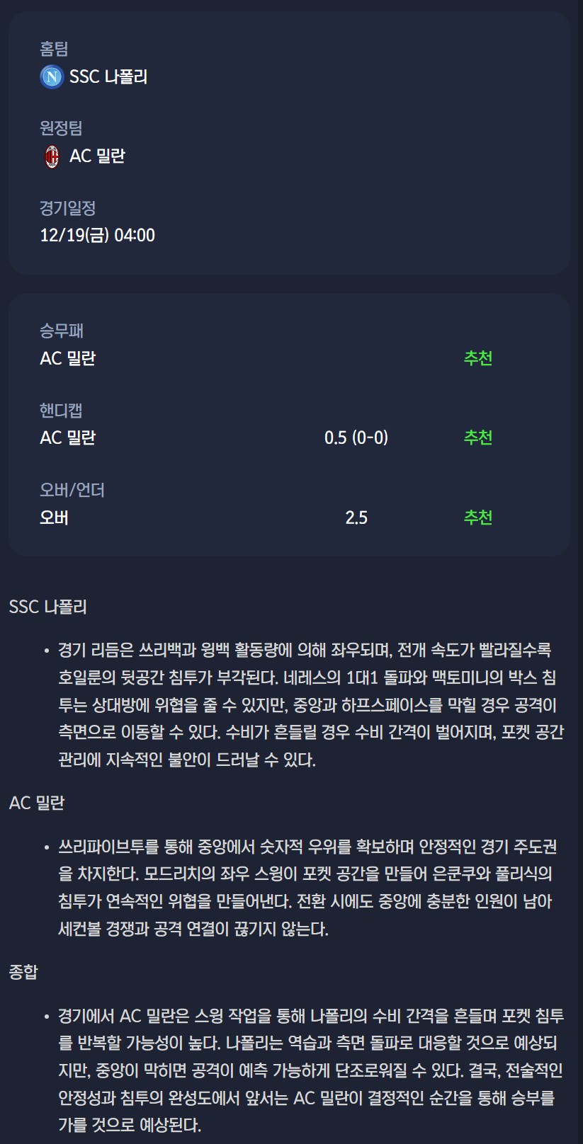 2025년 12월 19일 수페르코파 이탈리아나 분석자료 / 축구분석