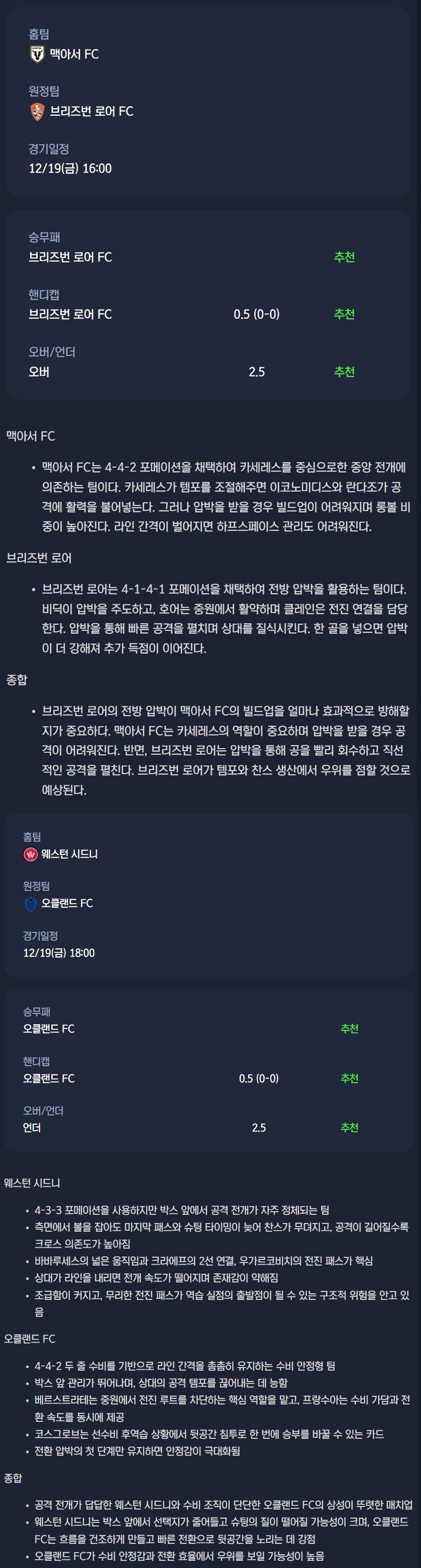 2025년 12월 19일 A리그 분석자료 / 축구분석