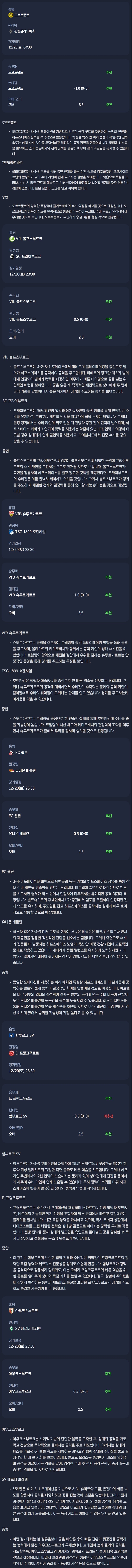 2025년 12월 20일 분데스리가 분석자료 / 축구분석
