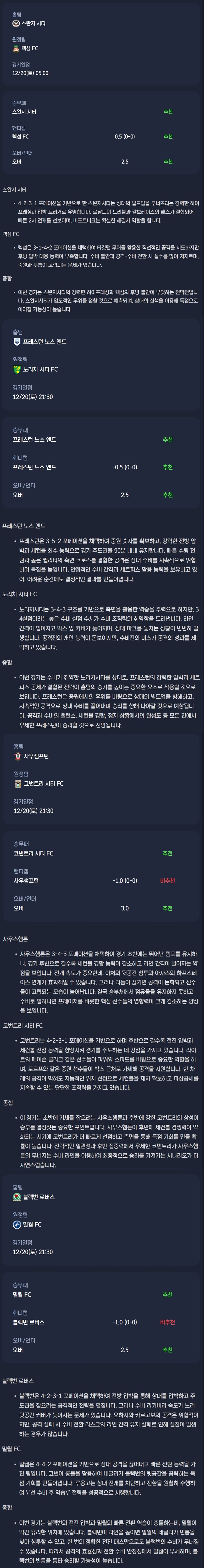 2025년 12월 20일 수페르코파 이탈리아나 분석자료 / 축구분석