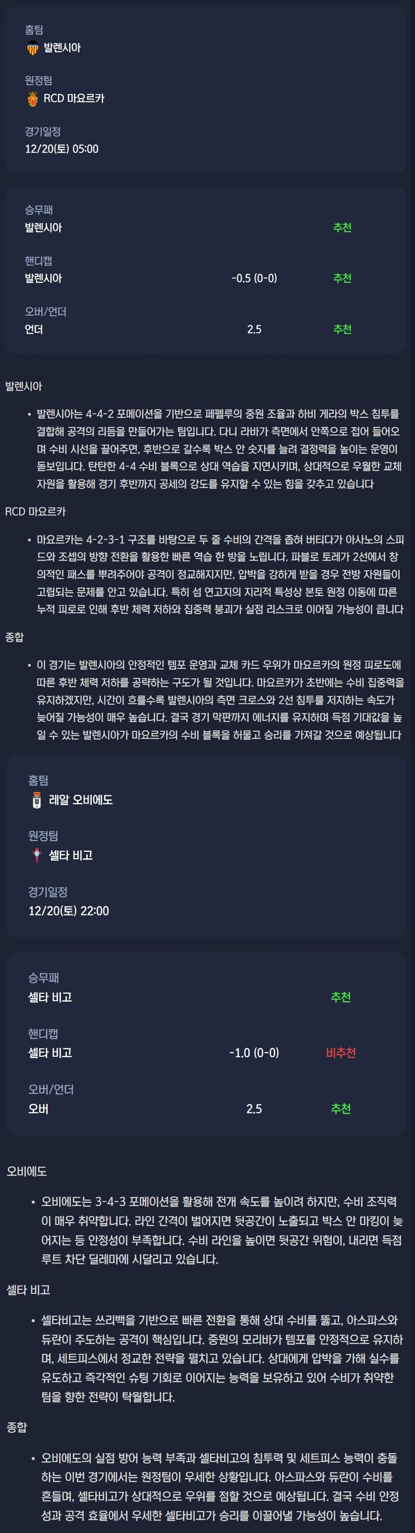 2025년 12월 20일 라리가 분석자료 / 축구분석