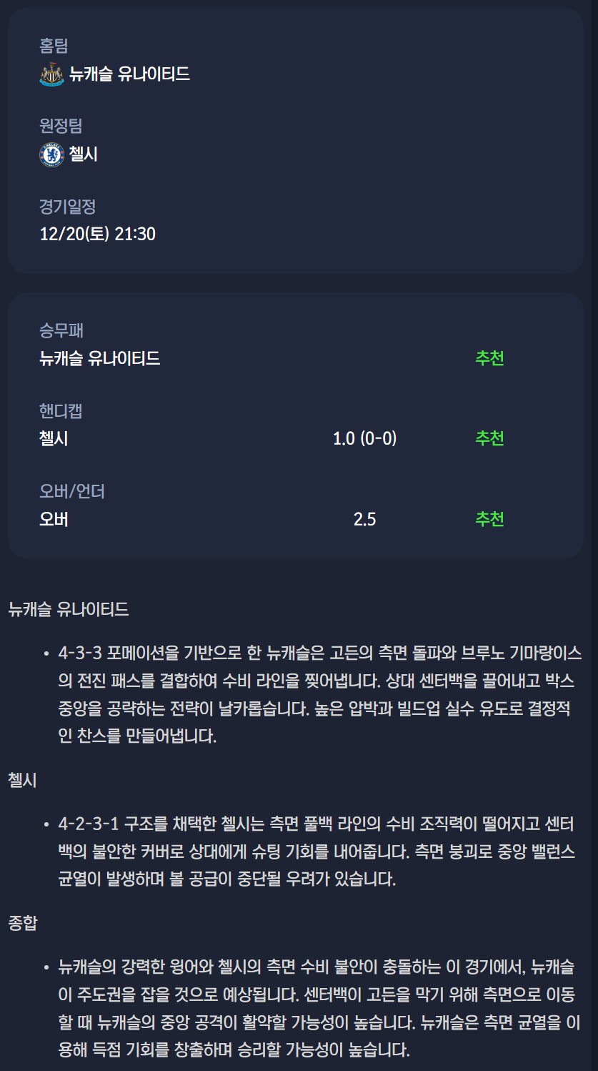 2025년 12월 20일 수페르코파 이탈리아나 분석자료 / 축구분석