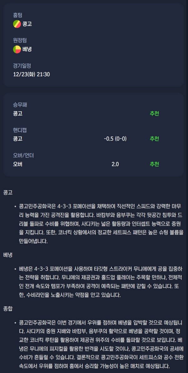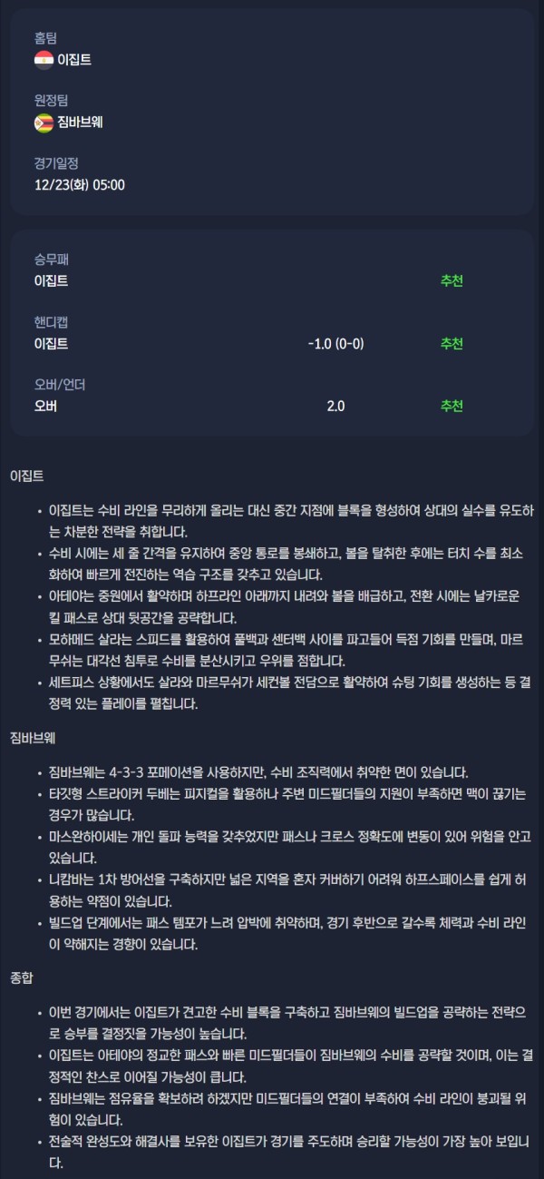 2025년 12월 23일 아프리카 네이션스컵 분석자료 / 축구분석