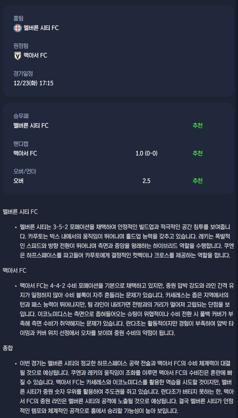 2025년 12월 23일 A리그 분석자료 / 축구분석